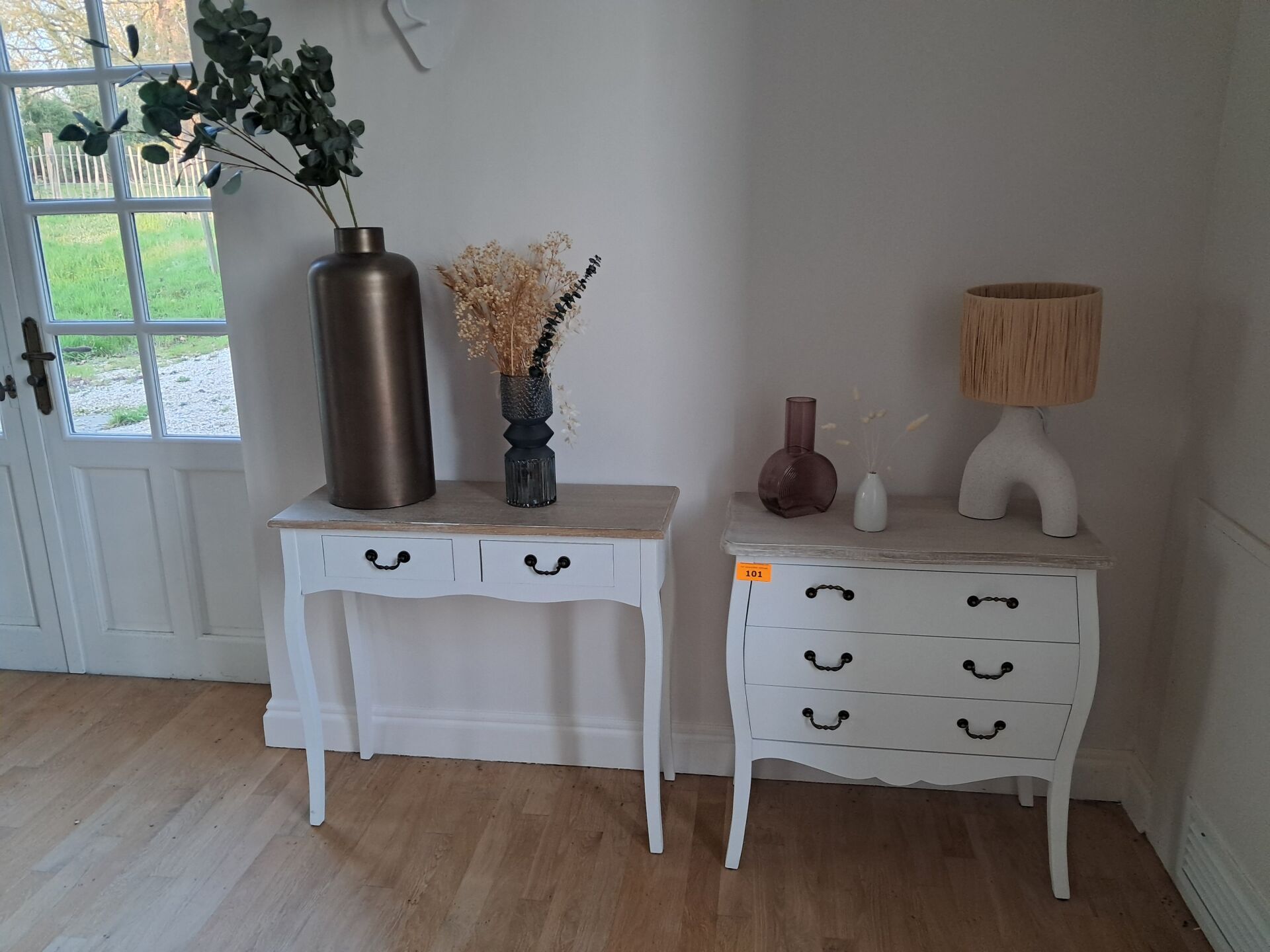 Mobilier neuf vendu en lot : Fauteuils, Lits, Tables basses, Appliques