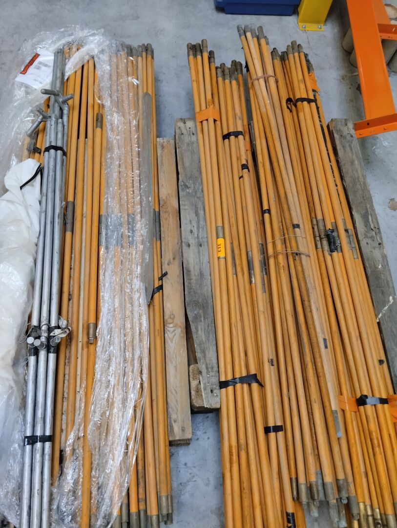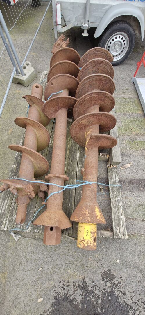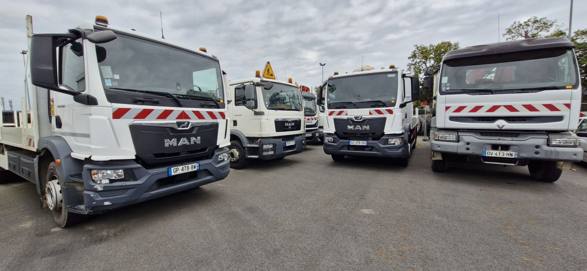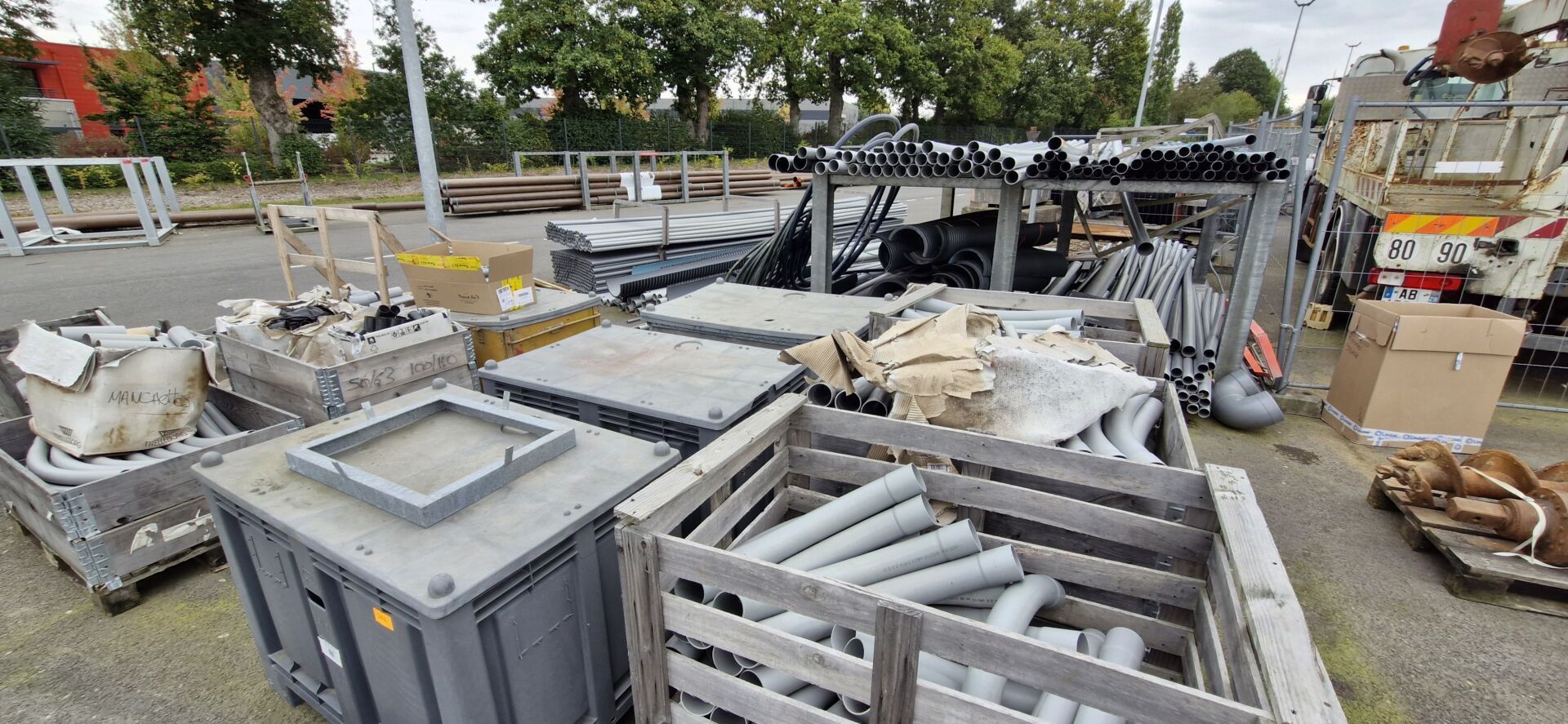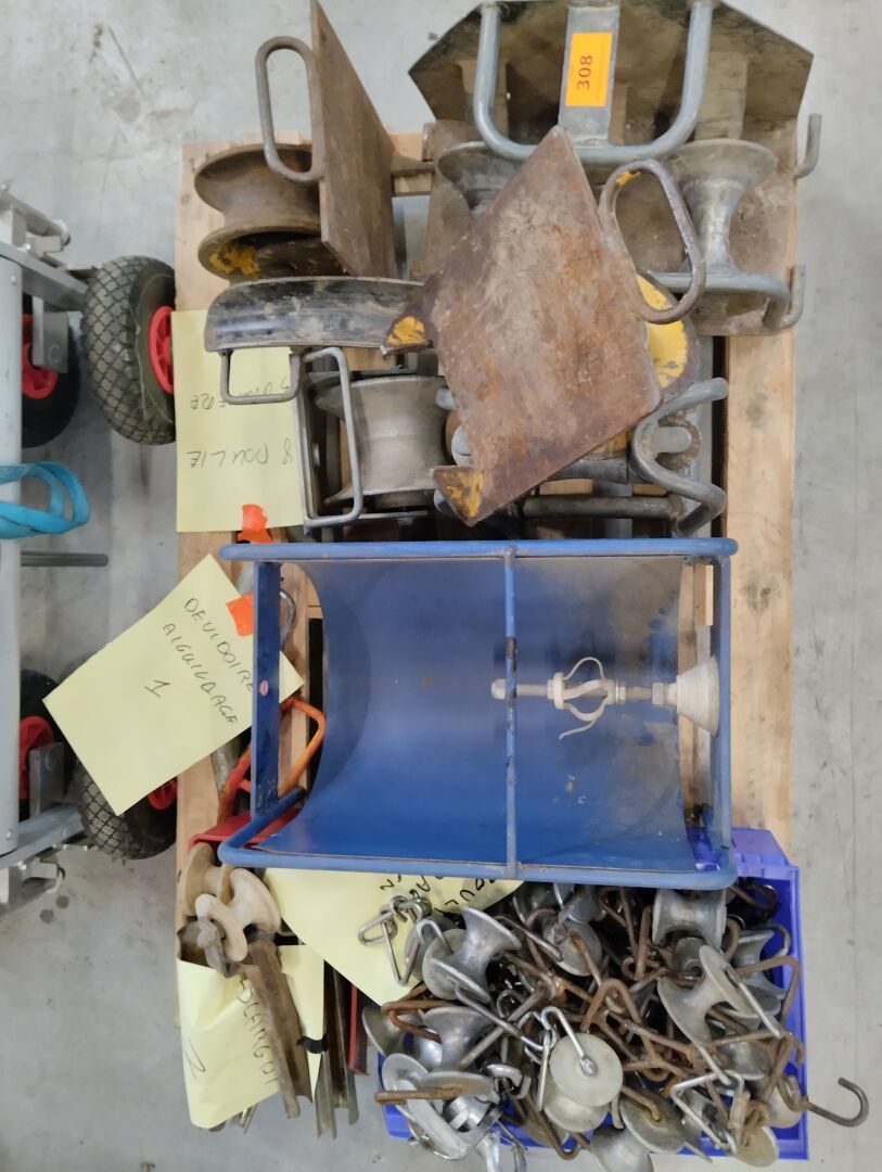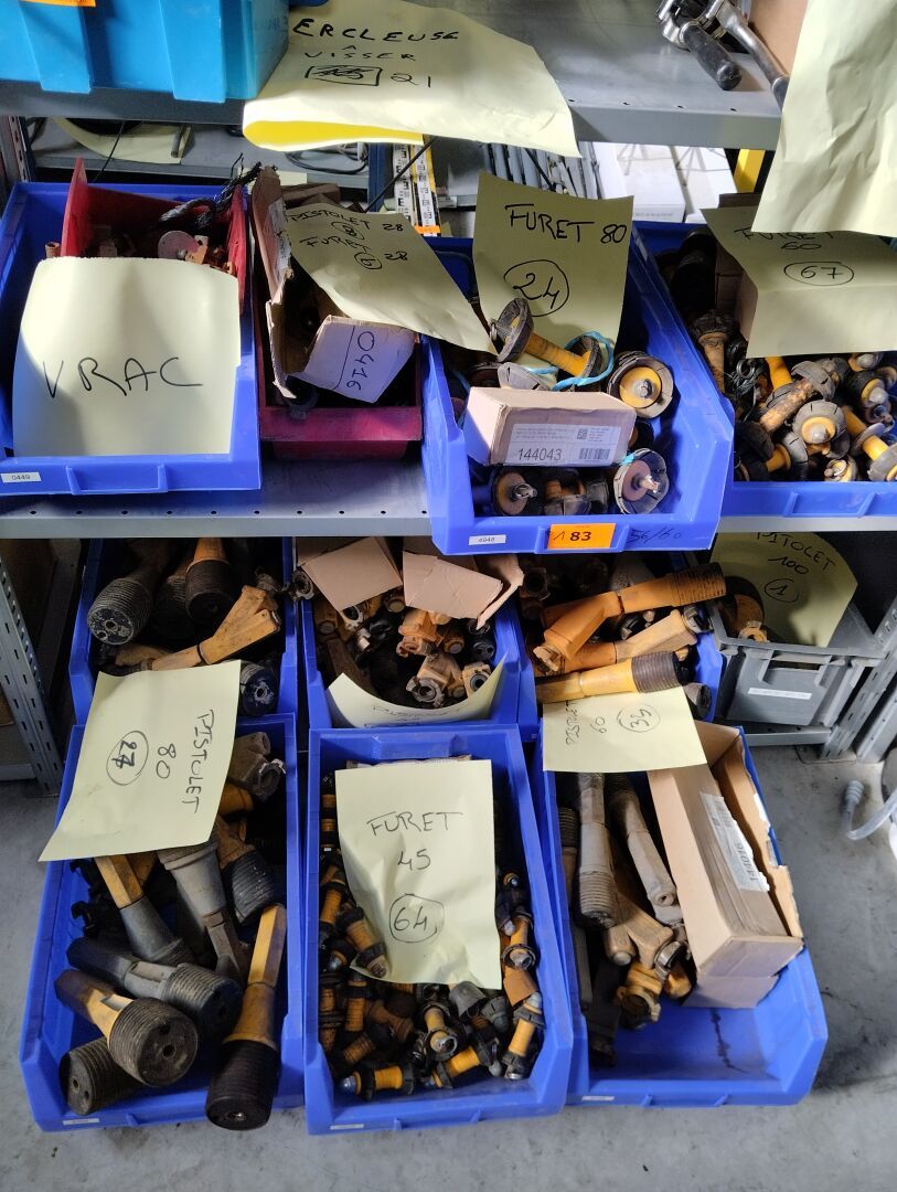 A 14h (à partir du n°400) : 4 Camions tarières (MAN, 2024, 933km / IVECO, 2017 97742km / MAN, 2012, 336271km / RENAULT, 2009, 304003km), 2 Chariots élévateurs (CLARK, CROWN), Mini-pelle SANY (2020, 771h, avec remorque), 3 Remorques, Dérouleurs de tourets…