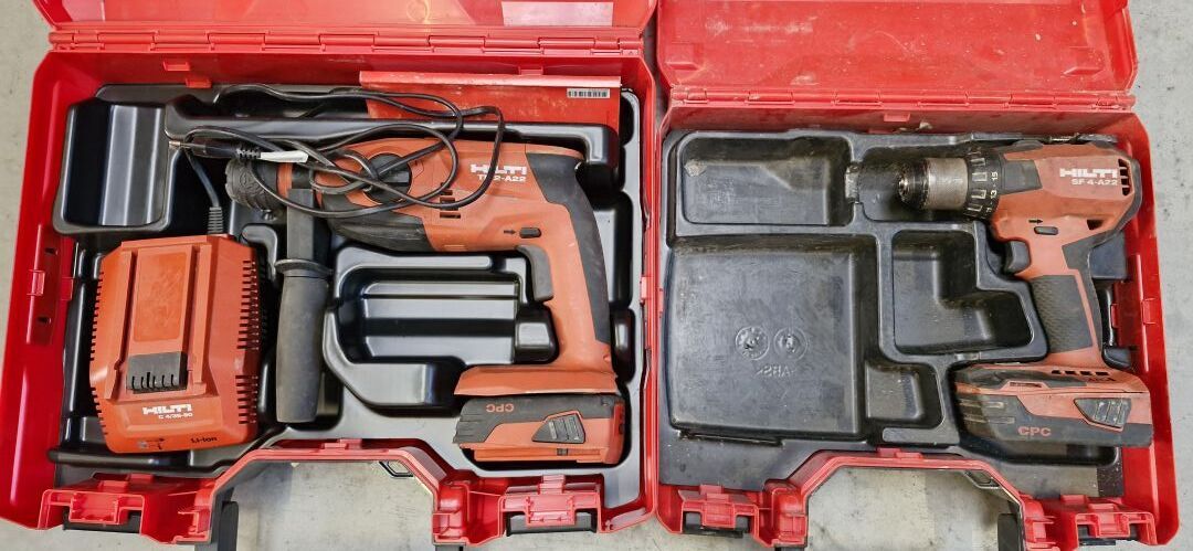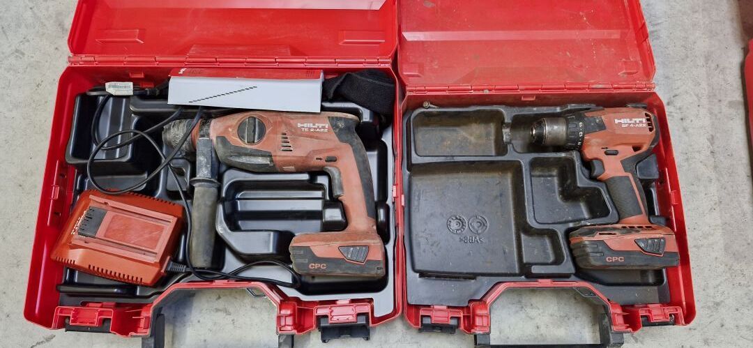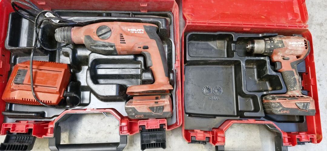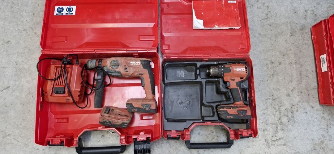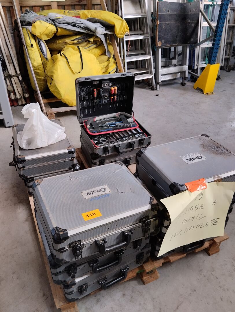 A 10h : Outillage HILTI (Perforateurs, Visseuses, Meuleuses...), Testeurs réseaux, Echelles, Aiguilles, Soudeuses, Chambres de tirage ...