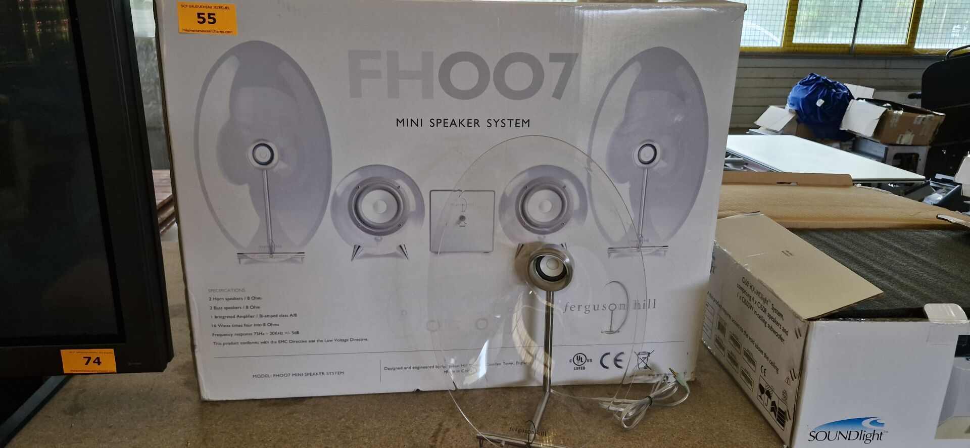 Enceintes (GENEVA, LOEWE, FERGUSON HILL, TANNOY, AKG), Ecrans (BANG et OLUFSEN, FUJITSU), Rétro projecteurs et lentilles BARCO, Loupes à haute pression, Ecrans AEG NEOVO, Unités de contrôle BARCO, Câbles...