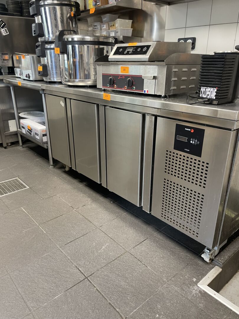 Plancha SOFRACA, Cellule de refroidissement (2021), Congélateur LIEBHERR, ROBOT COUPE (2023), Plonge et table en inox, Mobilier
